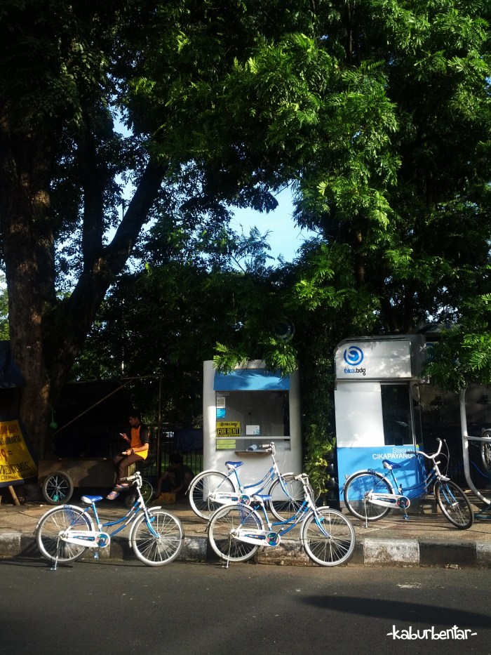 Ada satu cara alternatif untuk menikmati Bandung sekarang ini, menikmati jalanan Bandung dengan deretan pohon akasia yang masih rimbun di sekitar Jalan Dago, menikmati jajanan Bandung di sekitar area Gedung Sate, kini bisa kita nikmati sambil bersepeda. Biasa aja kali pake sepeda sih?! Memang sudah biasa buat yang punya sepeda tapi buat yang gak punya sepeda atau buat yang lagi liburan di Bandung ini kan jadi luar biasa. Ya gak?! Luar biasa kan? *maksa